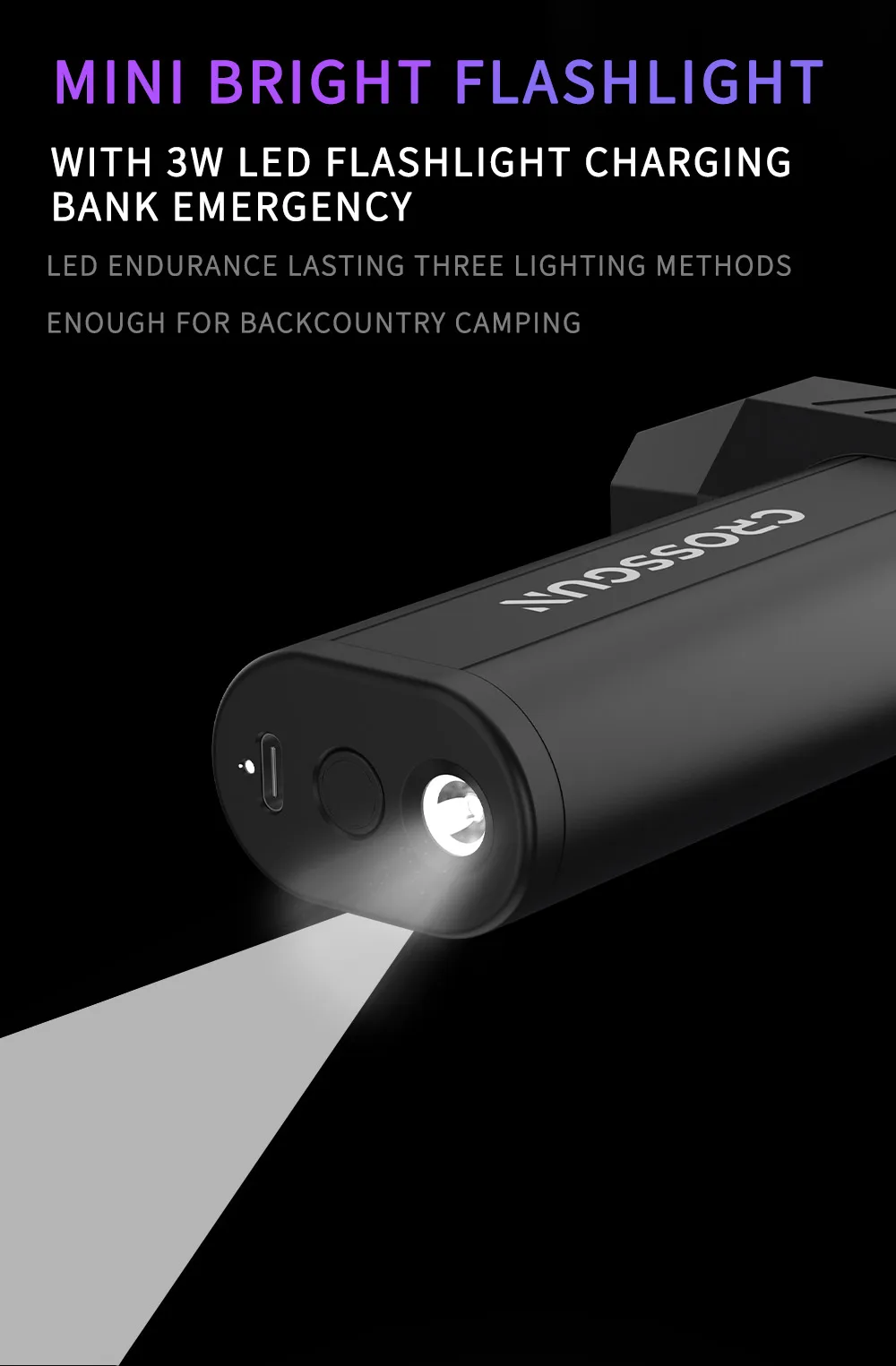 Install a 3W LED bead at the bottom, which can illuminate dark areas within a range of 30 meters when turned on, and has an emergency SOS automatic flashing function.