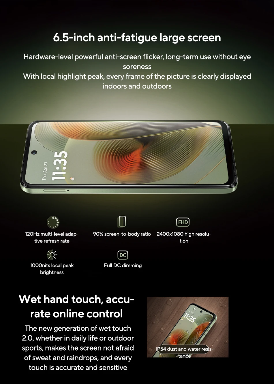 Screen ———-6.5 inches LCD Processor, Up to 120Hz refresh rate,1000nits